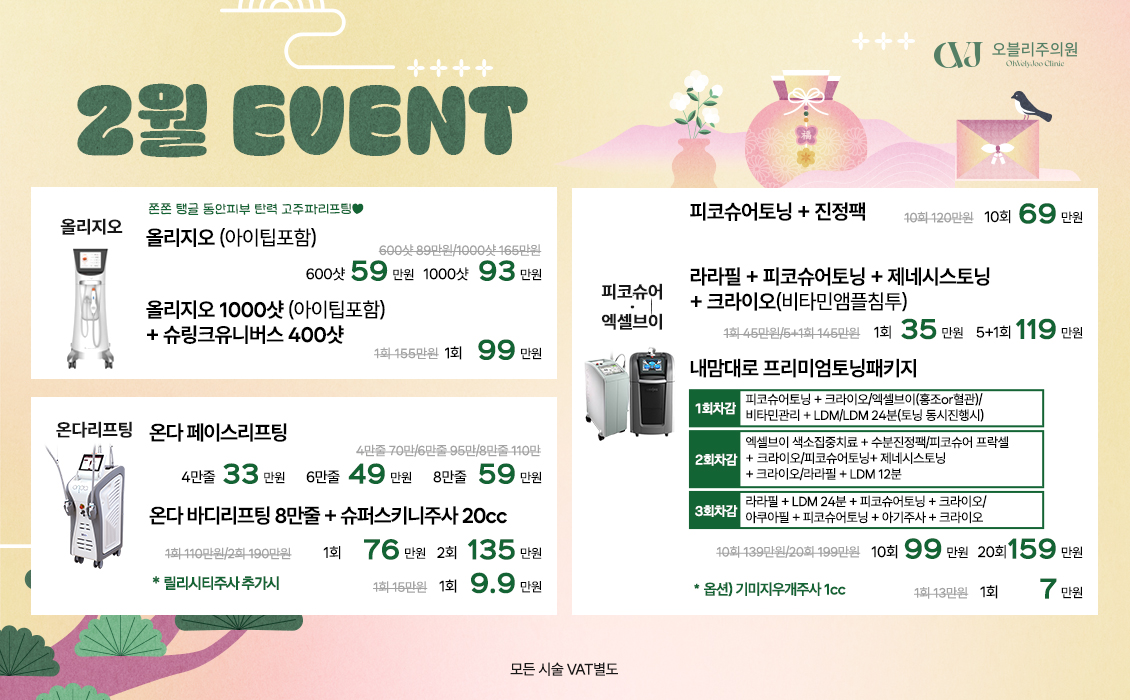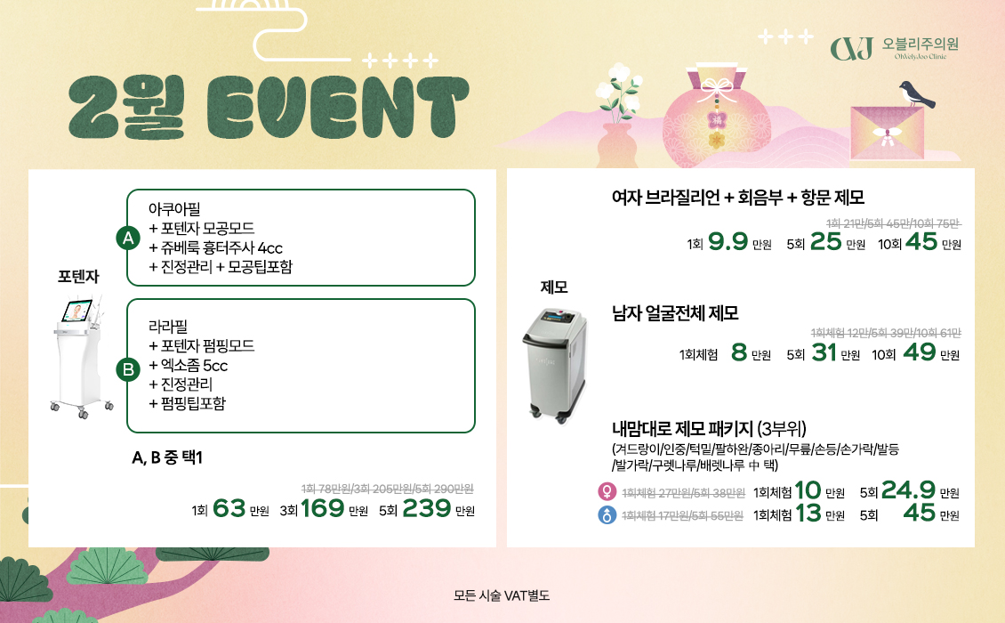 ※ 특별옵션 : 엑셀브이 색소집중치료 추가 선택 가능